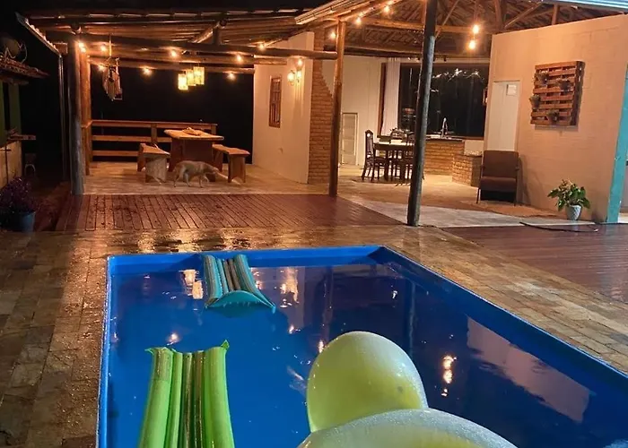 Com piscina privada para relaxamento dos hóspedes, a Sitio Esperança Vila Santa Bárbara está localizada 4.1 km da Matriz De Santo Antônio. Com acesso a terraço, esta casa de férias de Santa Bárbara está localizada a aproximadamente 15 minutos a pé do Santuário de São João Batista.